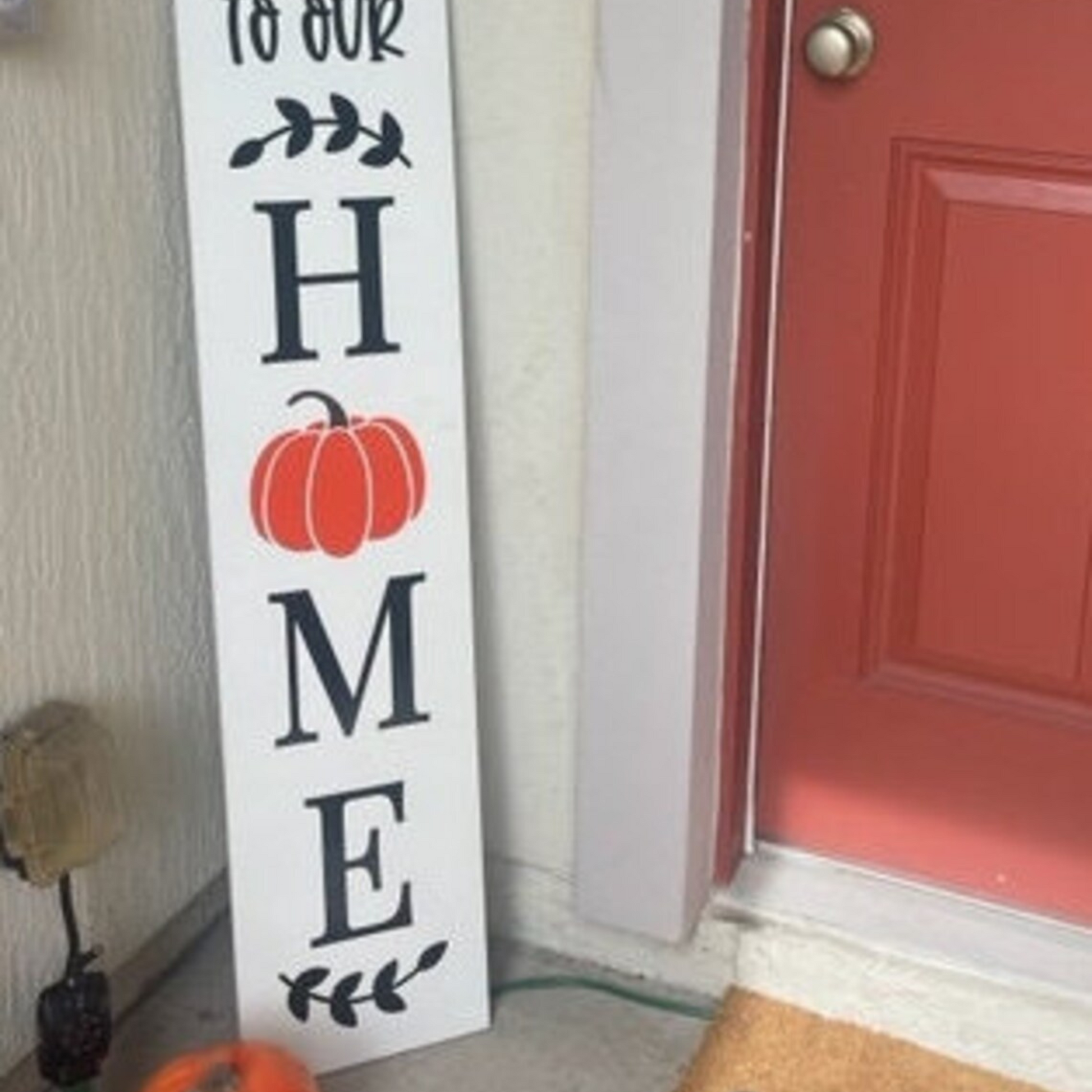 Several different design styles to choose from. A couple different styles shown in the pictures above. Make it seasonal, add your family name to the top or just say WELCOME for an everyday porch sign.